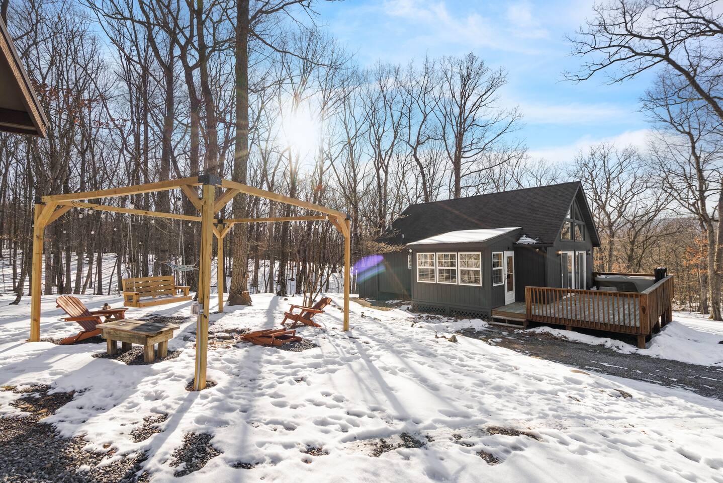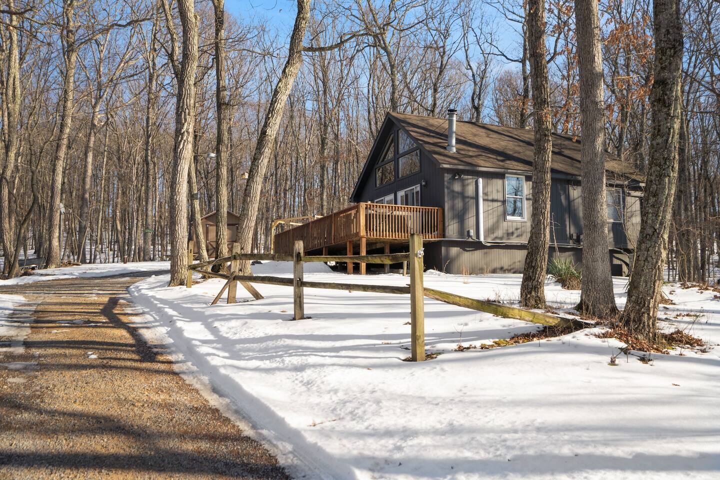 Our property does require you to drive about 1 mile on a gravel road. While the road is maintained, it is important to note that during the rainy season, the roads may be wet and muddy. During the winter when there is snowfall, it is recommended that your vehicle is a 4WD. Cars may be able to handle the roads, but there may be a chance of it getting stuck if it rains or snows and tow trucks can be expensive. Please consider adding trip insurance as we follow our moderate cancellation policy. Firewood is not provided for the outdoor fire pit. Please keep in mind thatWi-Fi service can be spotty. All outdoor furniture is removed during the snowing winter months to protect its lifespan. Please enjoy the hot tub or stay cozy inside! This is a remote property without many stores. Plan accordingly. There is a Dollar General nearby, however, a grocery store is 20+ minutes away. Your safety is important to us, and for that reason, we’ve installed one security camera at the front of the property as well as smoke detectors, carbon monoxide detectors and fire extinguishers. This camera can only see outside the cabin on the porch and parking area in front of the cabin. If you should need to reach us with any safety concerns, please feel free to contact us through the Airbnb messaging app, and we will respond as quickly as possible ☆☆HOUSE RULES☆☆ - NO PARTIES OR EVENTS WHATSOEVER. The property is managed admittance of guests in addition to the ones listed on the booking or throwing parties will results in immediate cancellation of your reservation with NO refund per Airbnb and Property policies. - No smoking - No pets of any kind - Self check-in with smart lock - We maintain a no shoes house to keep our place ideal for all guests. All shoes must be taken off at entry. - Guests not mentioned on the reservation must be approved for overnight stays by updating the reservation - No mailing packages to the home. The following Penalties will be applied for related incidents via a claim will with Airbnb. ** Smoking in the home: $150 **Late Checkout Past 11am without our consent. $75 **Excessive Guests than reservation. $50 per guest per night. **Excessive Cleaning if place is left filthy or if an unapproved animal is brought into the home. $150 Security Deposit - if you damage the home, you may be charged up to $300