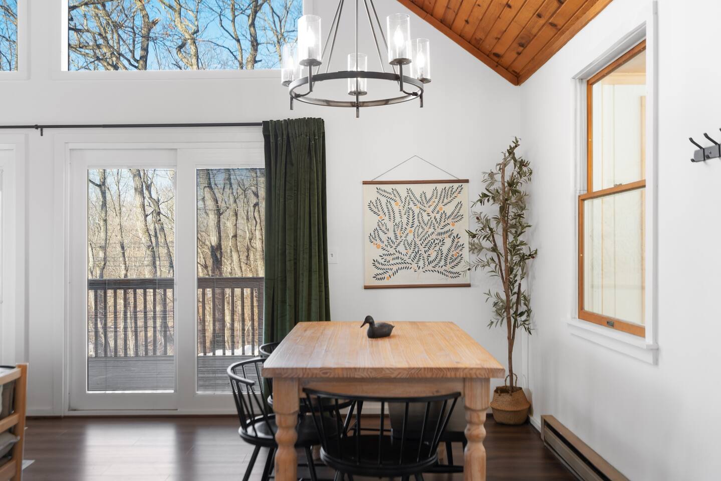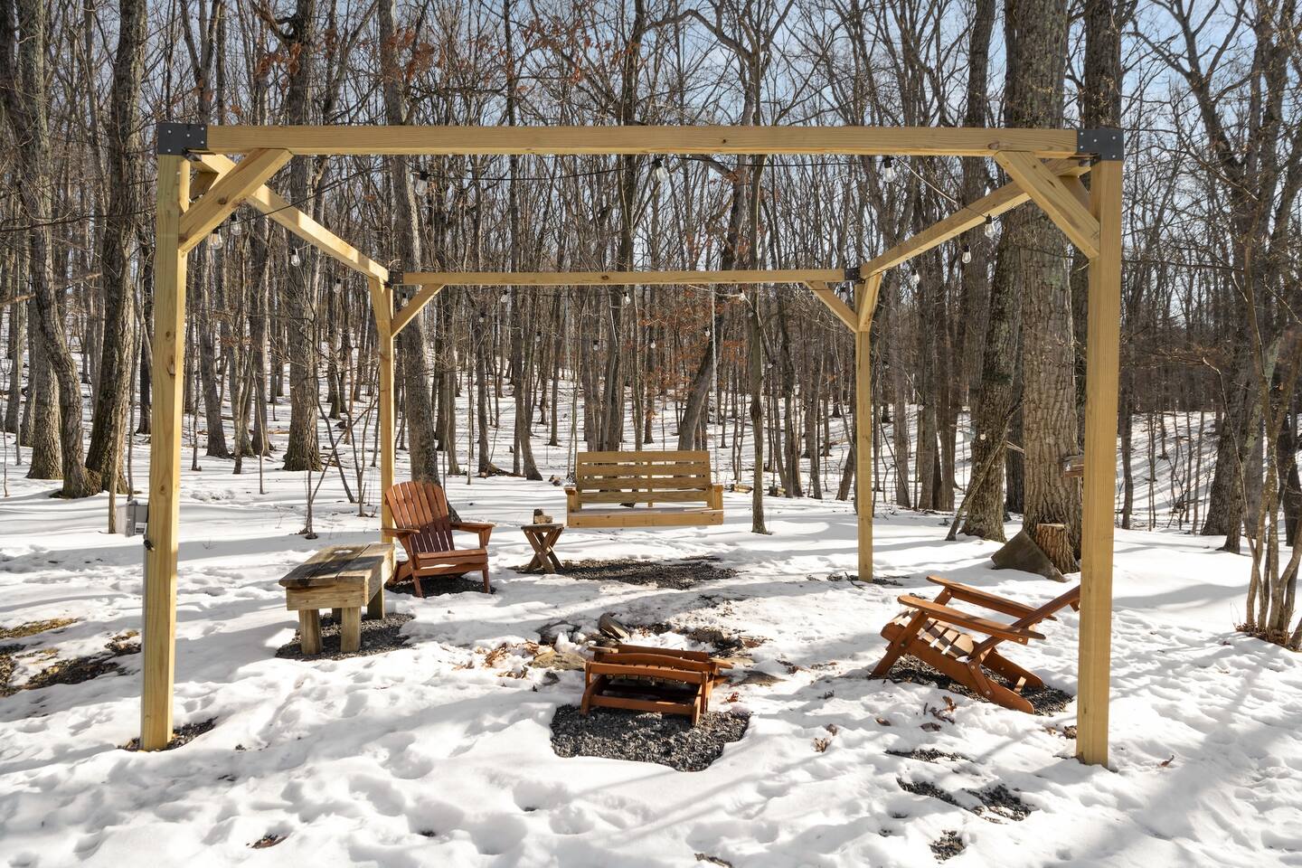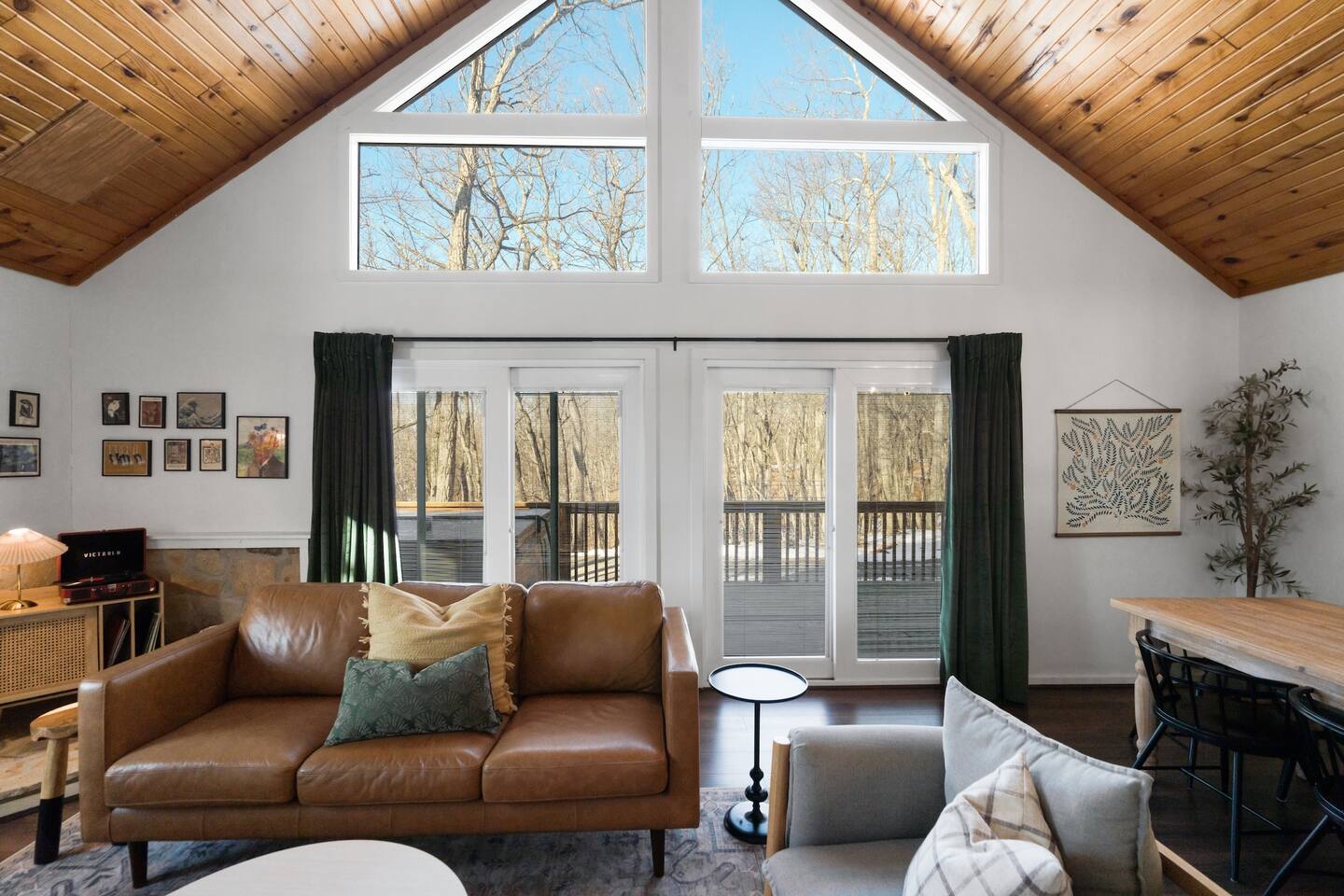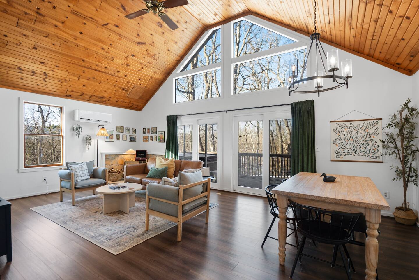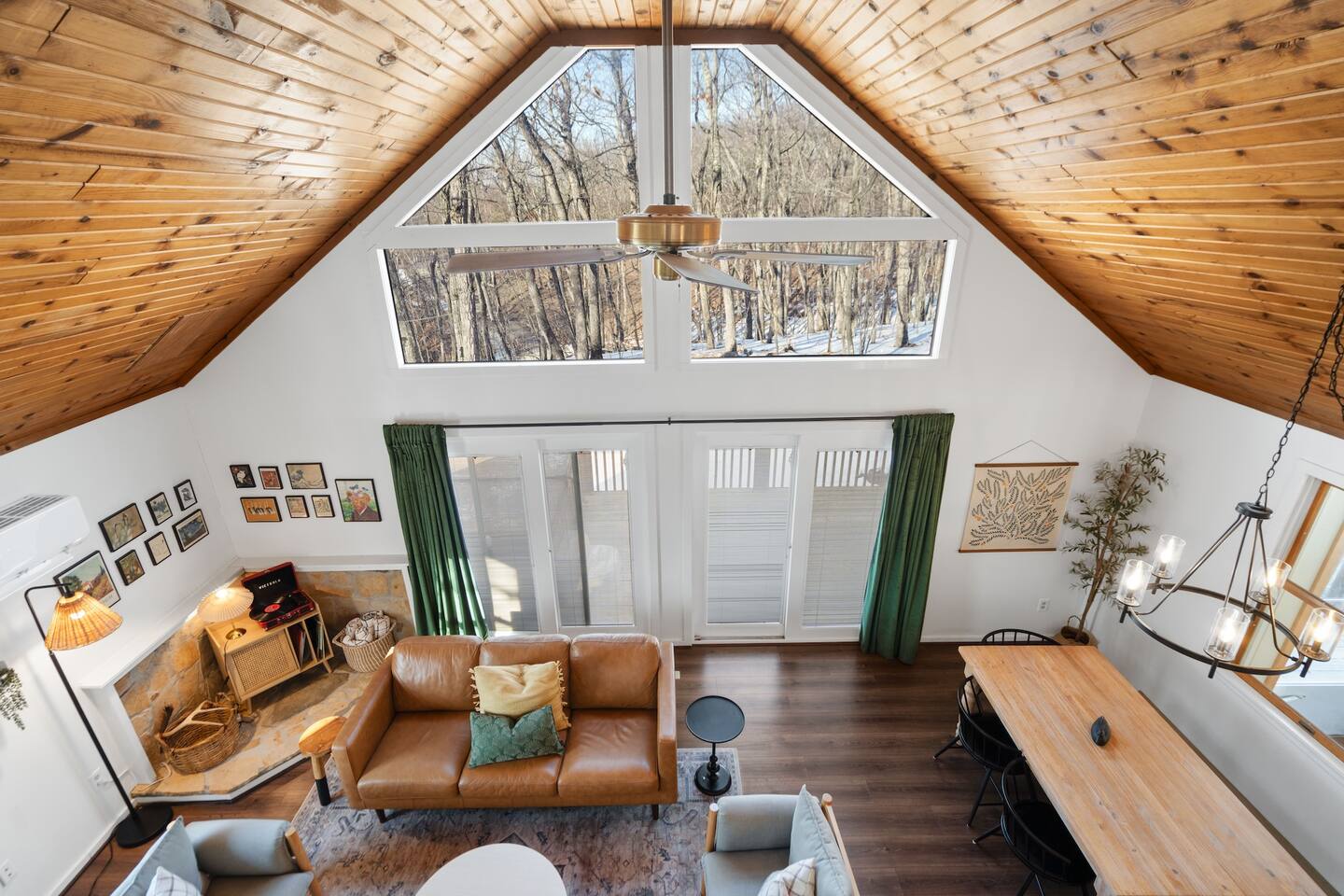 Our favorite things: ★ Secluded 2-acre setting with no neighbors in sight ★ Steamy hot tub beneath a canopy of stars ★ Romantic fire pit with string lights & a cozy swing ★ Vintage record player + handpicked vinyl ★ Vaulted ceilings + forest views from every window ★ Fully stocked kitchen perfect for real meals ★ Queen bedroom + loft with 2 full beds ★ A true Cloud Nine Stays experience Step inside and feel the shift. The cabin greets you with soaring ceilings, sun-soaked windows, and the quiet hum of the forest all around. Built for slow mornings and long, starlit nights, this is a stay designed for deep breaths and even deeper connection. ★ Living Room Vibes The heart of the cabin is open and light-filled, with a plush leather couch perfect for cuddling up with a book or streaming a movie on the 55” HDTV. Prefer to unplug? Spin a record, pour a glass of wine, and let the vinyl set the mood as dusk falls across the trees. ★ Fully Equipped Kitchen Unlike most rental kitchens, this one’s ready for real meals. From sharp knives to quality pans and spices, it’s stocked for anything from lazy breakfasts to candlelit pasta nights. Brew fresh coffee in the morning and enjoy it on the deck, watching sunlight dance through the maples. ★ Sleep Among the Trees Downstairs, you’ll find a queen bed wrapped in crisp white linens. Upstairs, the loft is home to two full beds nestled beneath the rafters. Every window frames forest views, and a whisper-quiet mini-split system keeps things perfectly cozy, no matter the season. ★ Soak. Swing. Stargaze. Step out onto the deck and feel your shoulders drop. Whether it’s a slow afternoon with a book, a bubbly soak in the hot tub, or a fireside moment in the swing (yes, the one with string lights!), this is where time melts away. Listen to the crickets. Watch the smoke drift from the fire. You’re exactly where you’re meant to be. ★ Stay Connected—Or Don’t We offer Wi-Fi, but it’s the woods—if the signal fades, take it as your invitation to disconnect and lean into the moment. Maybe even dust off a board game or cue up another side of that classic vinyl. ★ Family-Friendly Touches Traveling with a little one? We’ve got a pack-n-play (BYO bedding) and a booster seat ready to go. Whether you're here for an anniversary, a proposal, or just a quiet weekend away, this Cloud Nine Stays retreat offers the kind of peace you didn’t know you needed—until now. 📍Just 15 min to Cacapon State Park, 20 min to Berkeley Springs, and 50 min to Shenandoah.
